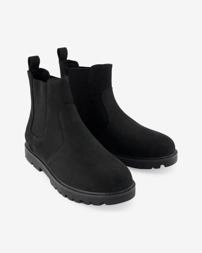 Highly durable, Toms' Griffin boots are crafted from water-resistant black leather and feature cushy CloudBound insoles. True to Toms' easy-to-wear mantra, elastic gore and a pull tab make them easy to slide on and off.