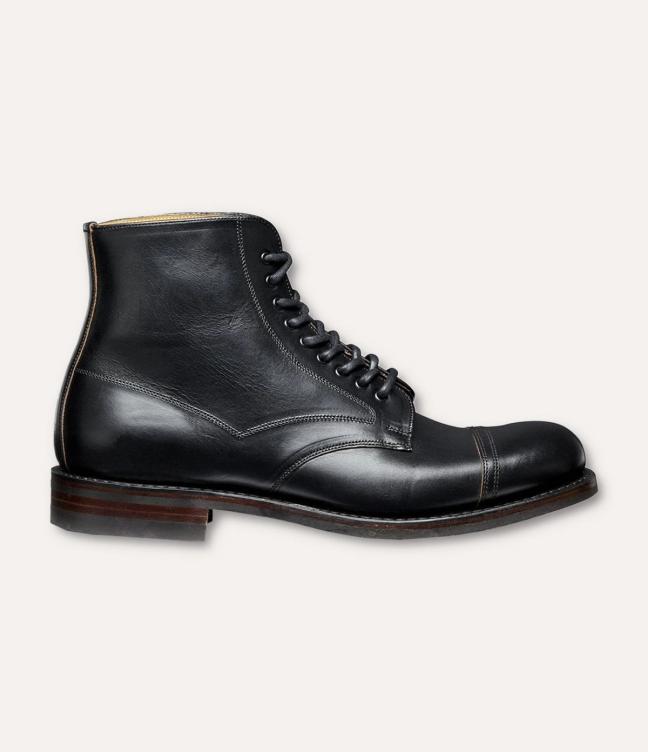 The first thing to ask yourself when picking the right boot is what you’d like to use them for. If, like many, you prefer to keep things open-ended and are after something with versatility and adaptability, all the while being able to protect your feet from the elements, we’d first nudge you towards the ‘Jarrow’, a casual day-to-day choice. Notably, it’s produced in black Chromexcel leather, a material whose packed fibres not only guarantee the ability to withstand the stresses of daily wear, but also pick up a beautiful tonal change over the years. Minimal embellishment and a round toecap (which doesn’t have the dressed-up feel of a more pointed tip) offer maximum versatility, too.