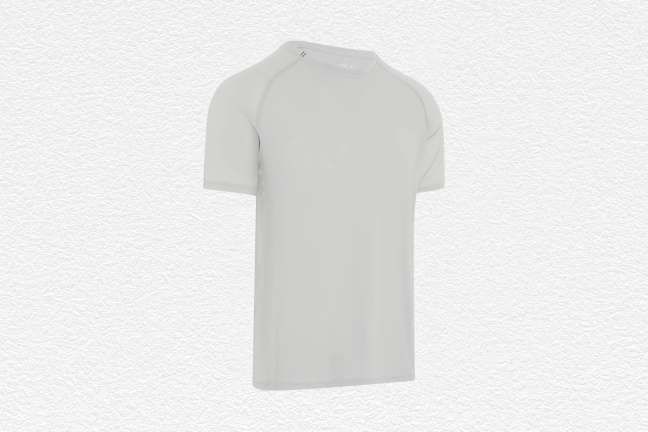 Designed for high-intensity environments, the Italian micromesh that is used in this T-shirt has a wicking structure. Meanwhile it has been 'Sanitised', to prevent any build-up of odour. One for sticky London summers.