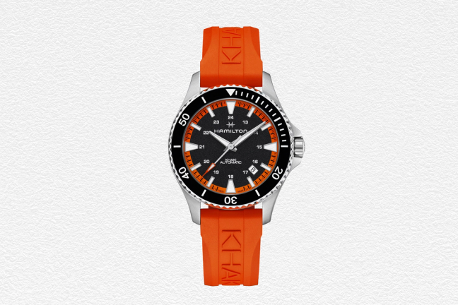 Beachside, poolside or swimming in the deep ocean, the new Khaki Navy Scuba has been designed for modern mariners, snorkelers and surfers. It’s eye-catching as well as functional, thanks to its tangerine orange rubber strap, contrasting black dial and superior power reserve of 80 hours.