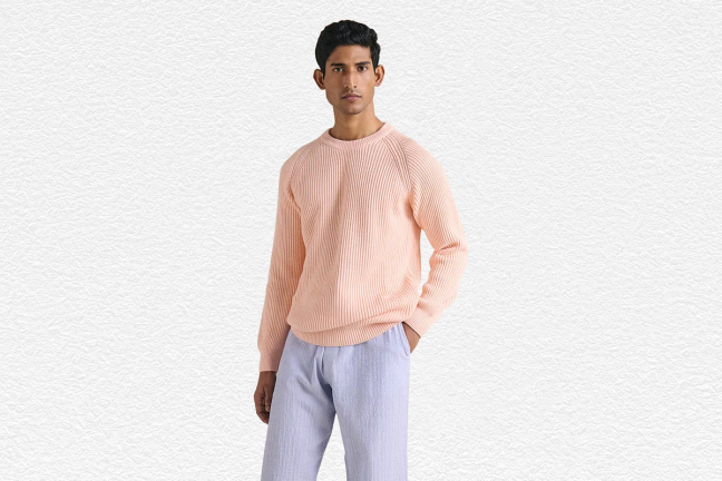 When the sun shines, it's a good time to bring out pastel hues. They compliment a tan, and just add a nice summery vibe to an outfit. New & Lingwood's 100 per cent cotton crew neck is a must-have.