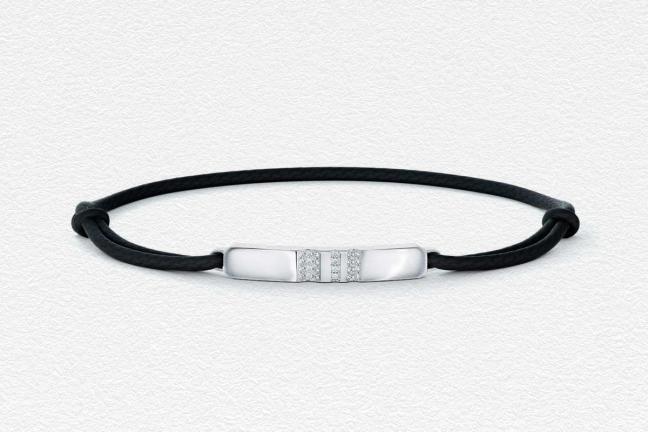 Threading together rugged and refined styles, this bracelet from the British-based jeweller offers modern men the chance to wear precious gems in a subtle, sophisticated way. Rows of pavé-set diamonds are set into a strip of 18k white gold and tied onto an adjustable cord bracelet.
