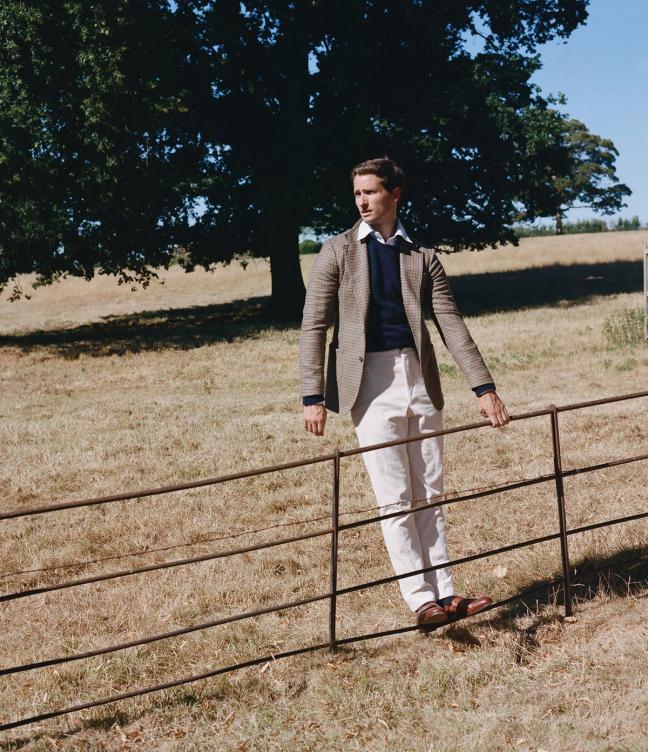 Further in the collection, a brown club-check single-breasted jacket can also move easily between bucolic settings to business meetings at The Ivy; while for those who want to make a bright but subtle statement can opt for the green-check scarf crafted from Escorial wool.